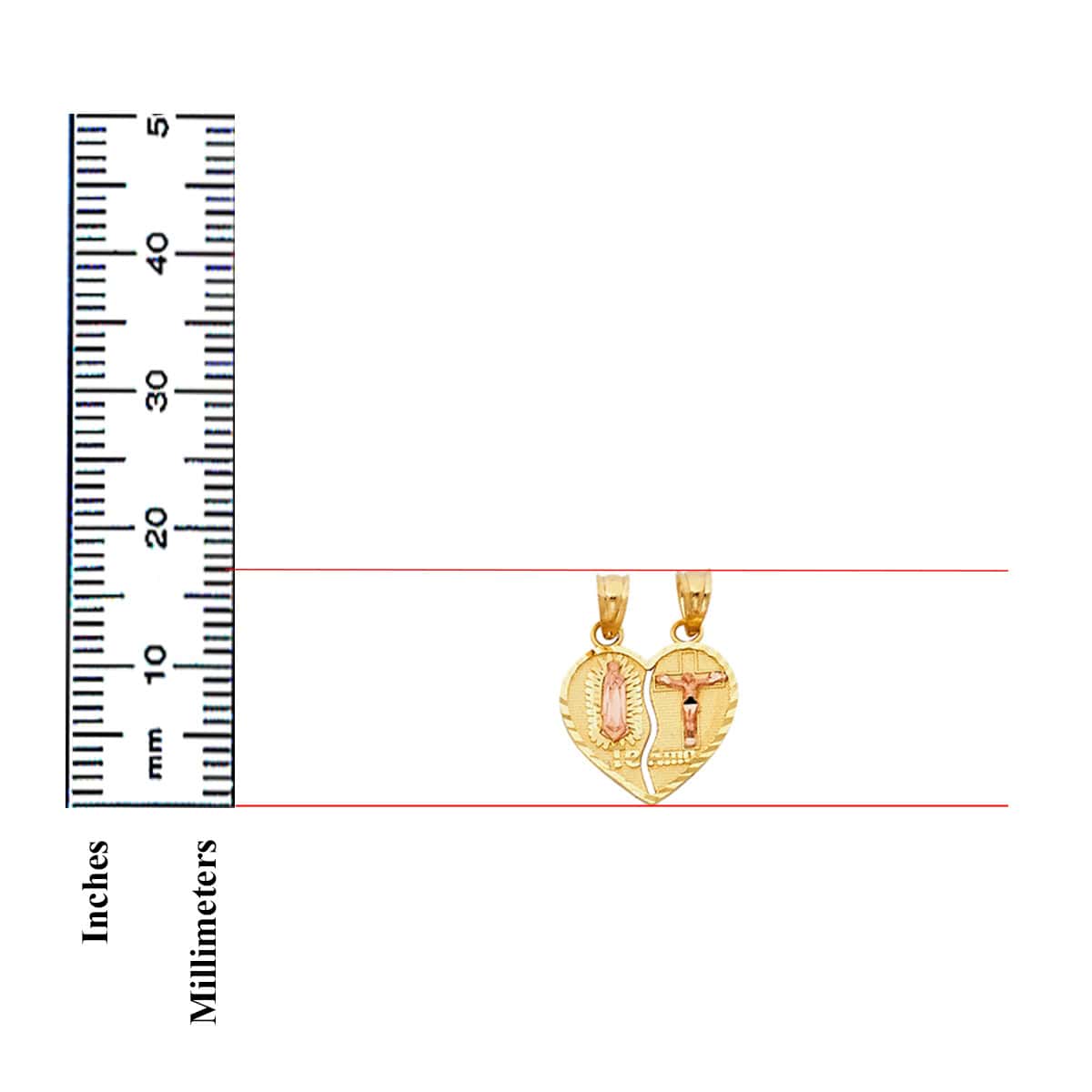 14K Two Tone Gold Religious Guadlupe Juses Broken Heart Pendant