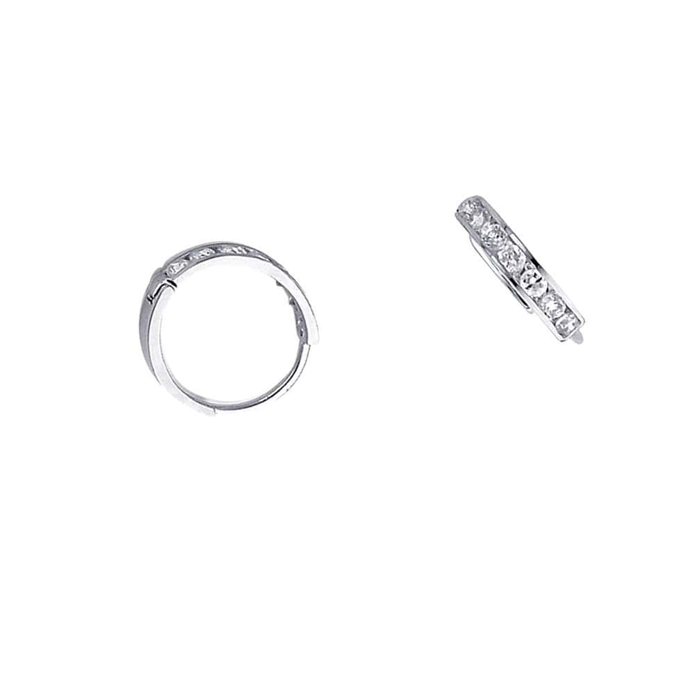 14K White Gold 2mm Cubic Zirconia Huggies Earrings