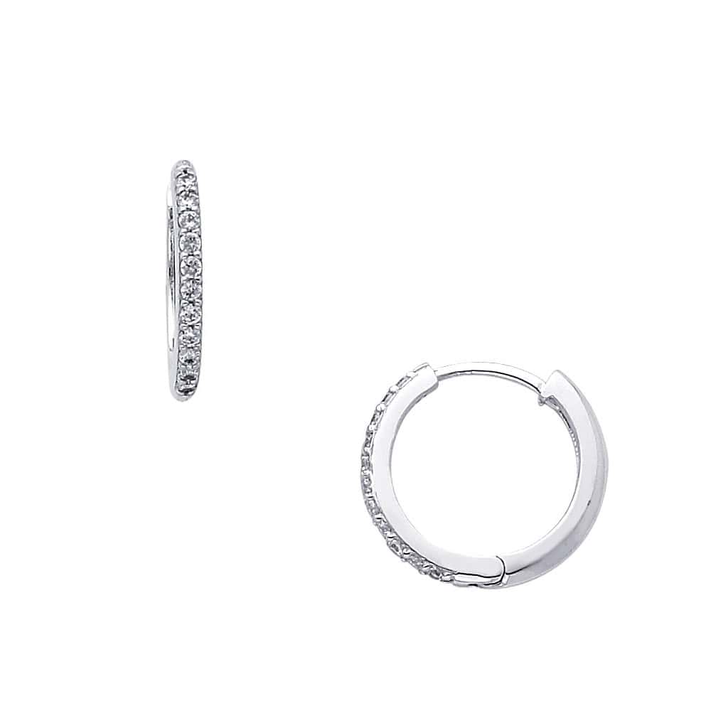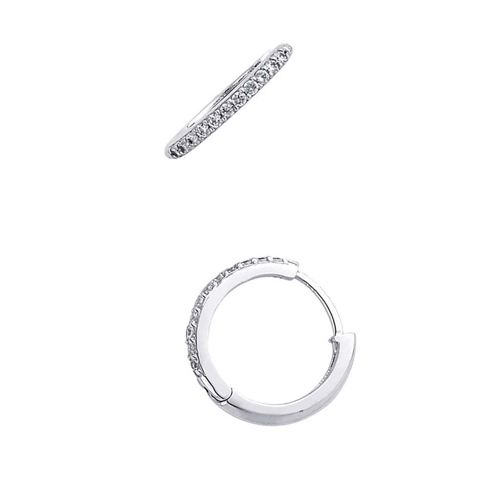 14K White Gold 2mm Cubic Zirconia Huggies Earrings
