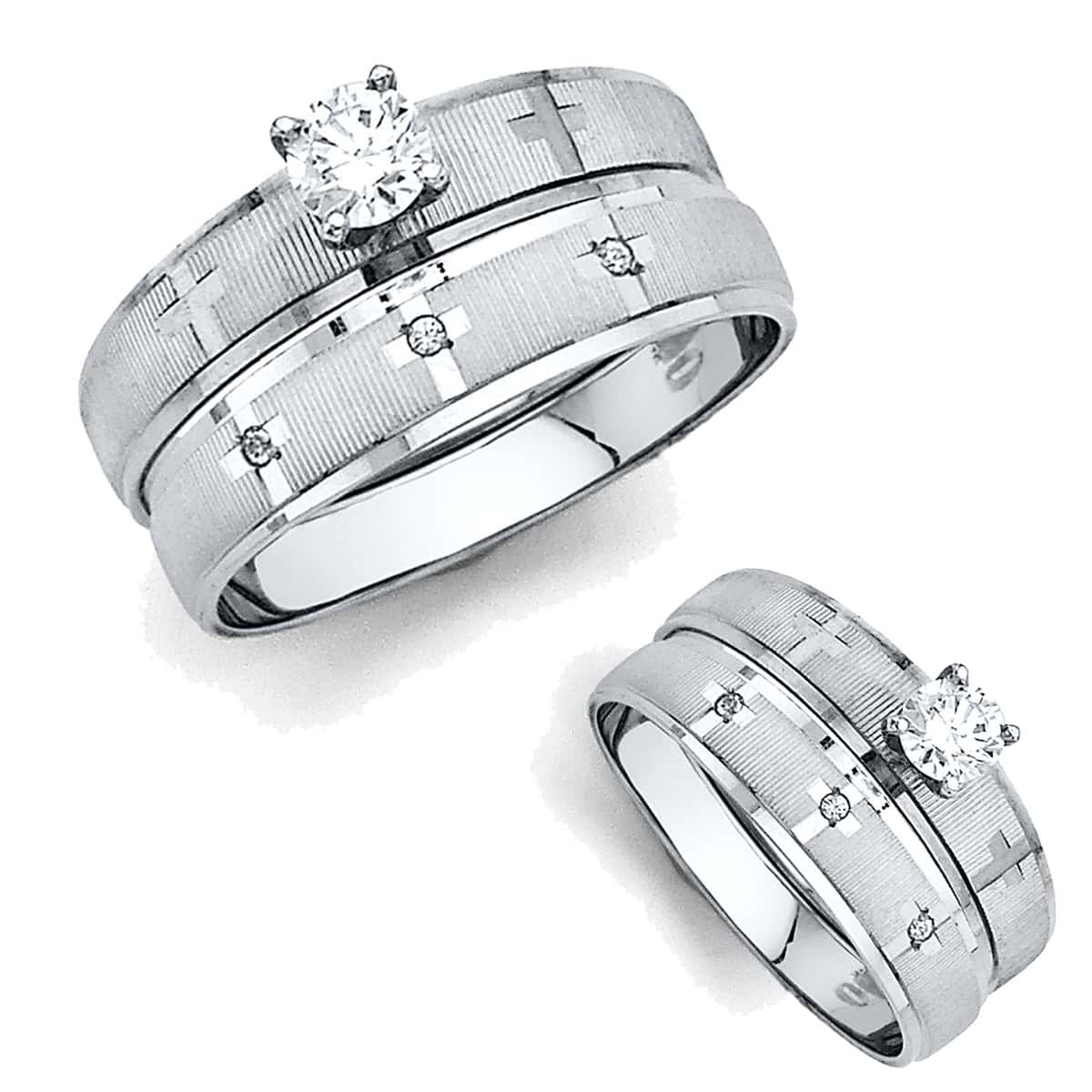 14K White Gold Cubic Zirconia Engagement Ring and Ladies Wedding Band Set