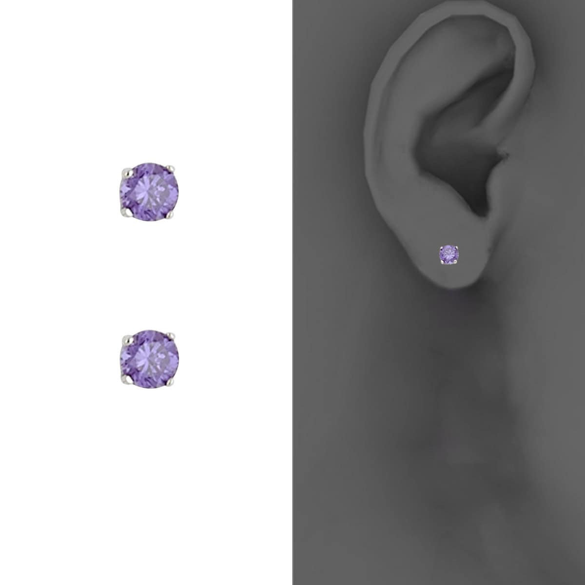14K White Gold RD 3mm Stud Earrings w/Screw(FEB)