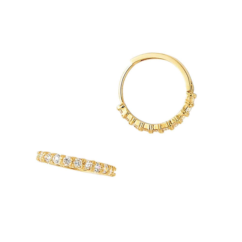 14K Yellow Gold 2mm Cubic Zirconia Huggies Earrings