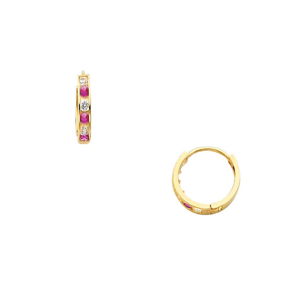 14K Yellow Gold 2mm Cubic Zirconia Huggies Earrings