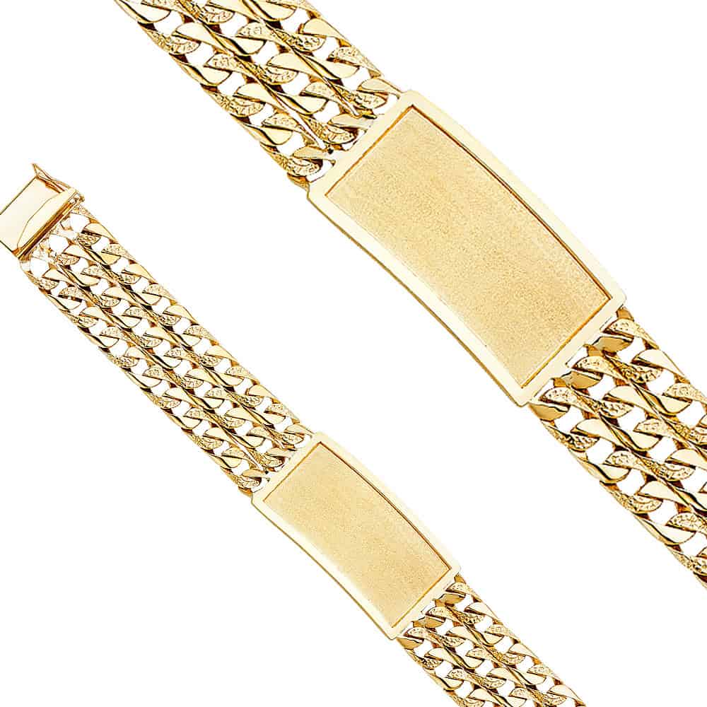 14K Yellow Gold 3L Nugget Cuban Link ID Bracelet – 9″