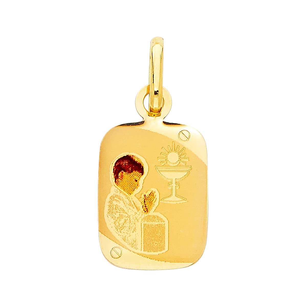 14K Yellow Gold Baptism Enamel Picture Religious Pendant