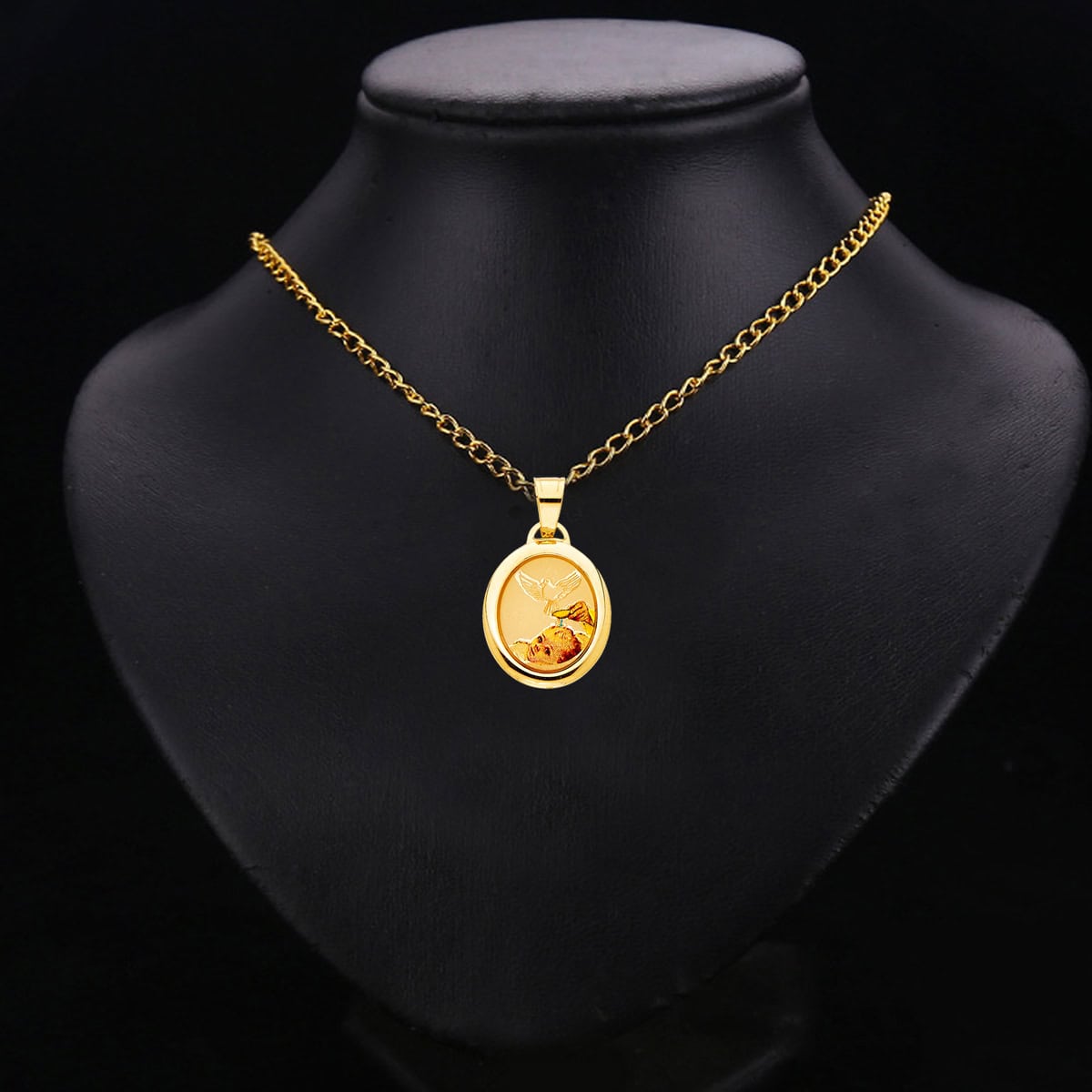 14K Yellow Gold Baptism Enamel Picture Religious Pendant