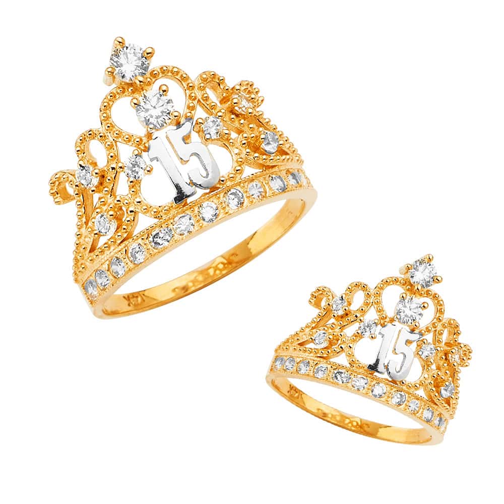 14K Yellow Gold Cubic Zirconia 15 Years Crown Ring