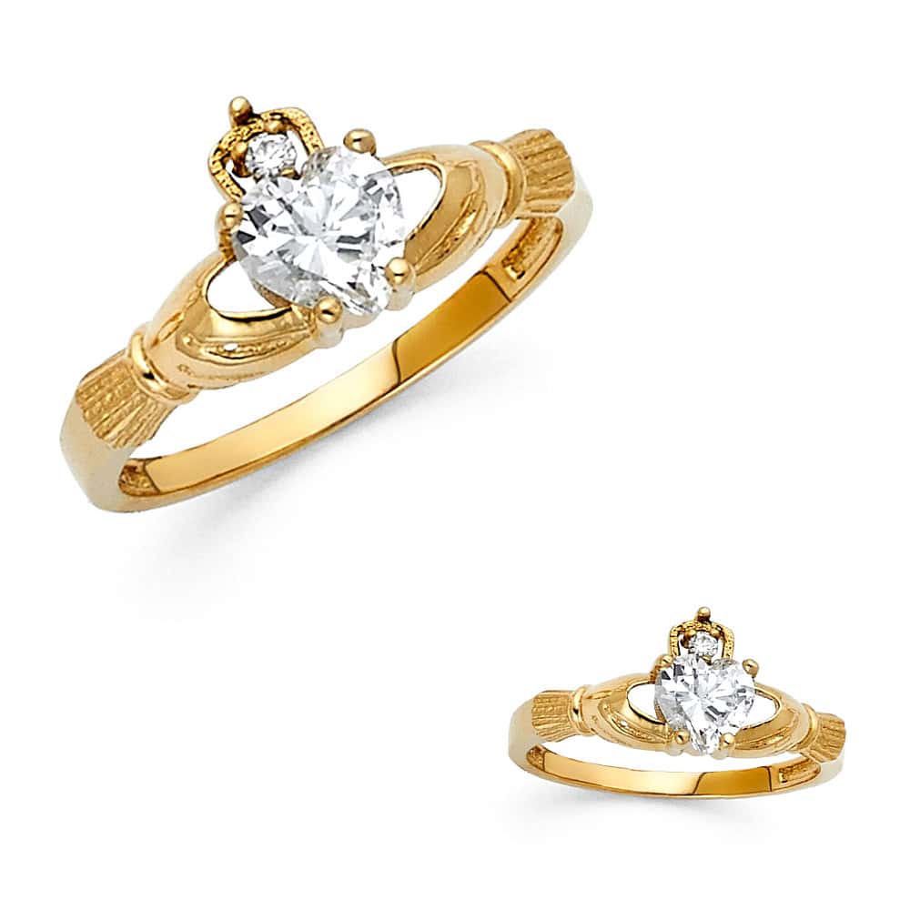 14K Yellow Gold Cubic Zirconia Claddagh Ring