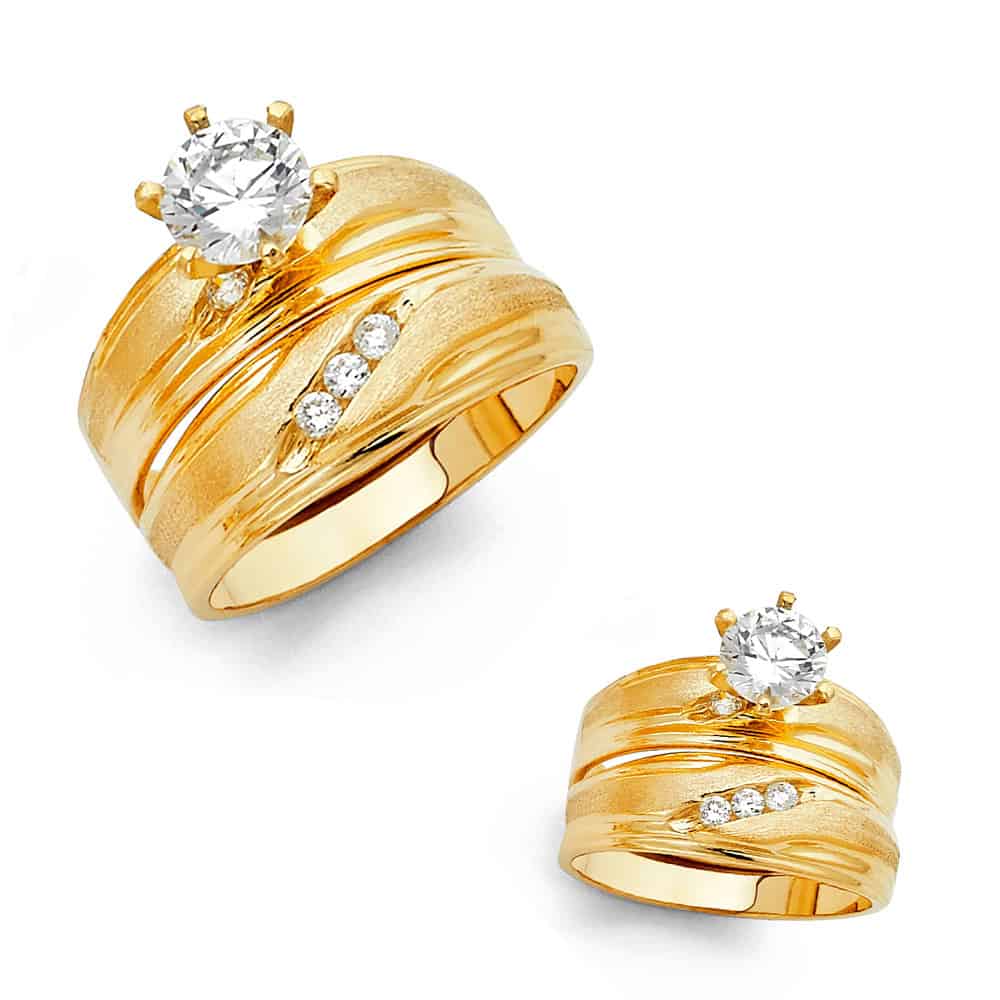 14K Yellow Gold Cubic Zirconia Engagement Ring and Wedding Band Set