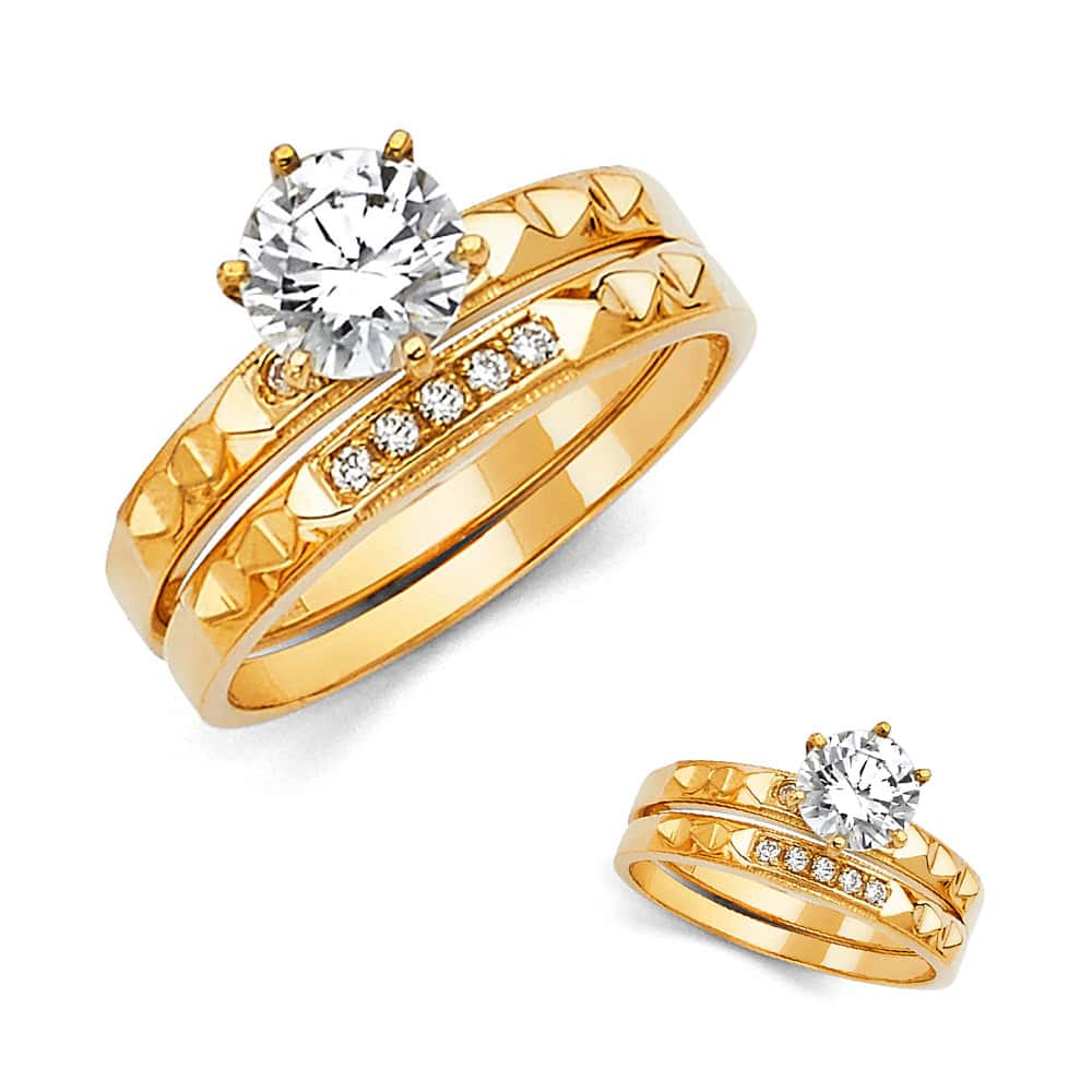 14K Yellow Gold Cubic Zirconia Engagement Ring and Wedding Band Set