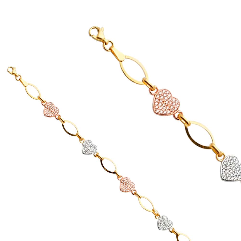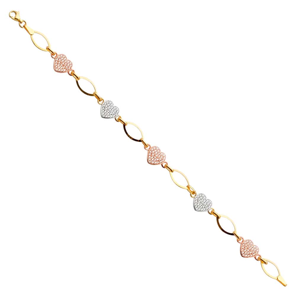 14K Yellow Gold Cubic Zirconia Heart Bracelet – 7.25″