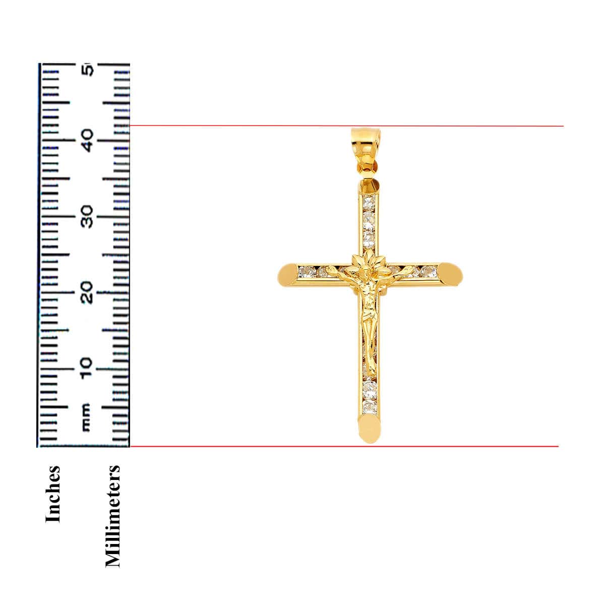 14K Yellow Gold Cubic Zirconia Religious Crucifix Pendant
