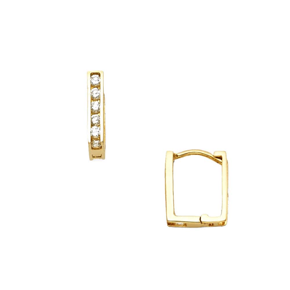 14K Yellow Gold Cubic Zirconia Square Huggies Earrings