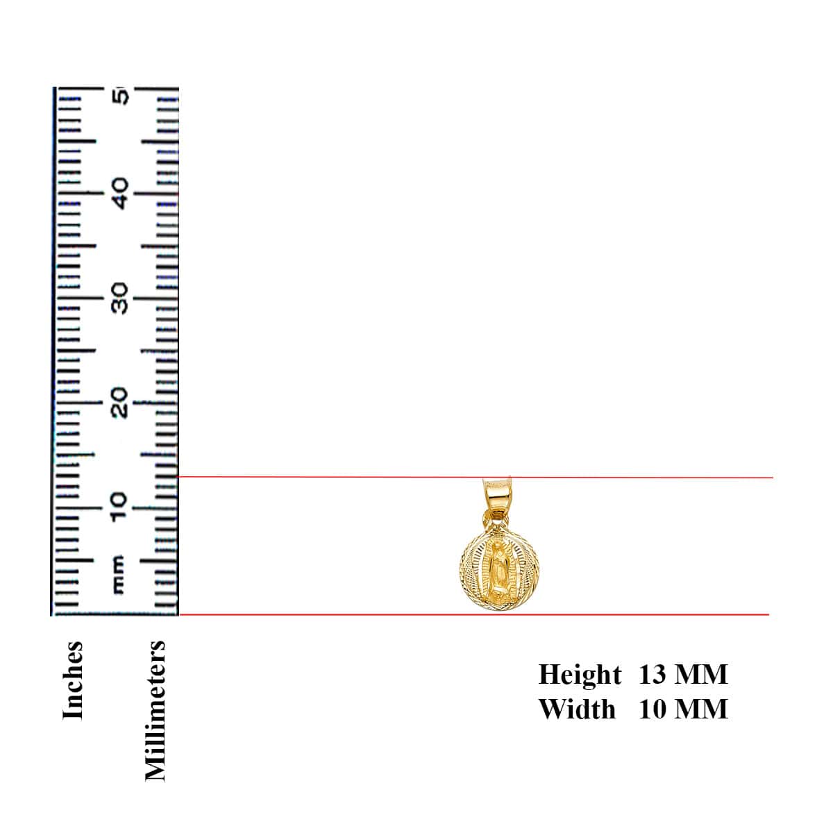 14K Yellow Gold Diamond Cut Guadlupe Stamp Religious Pendant