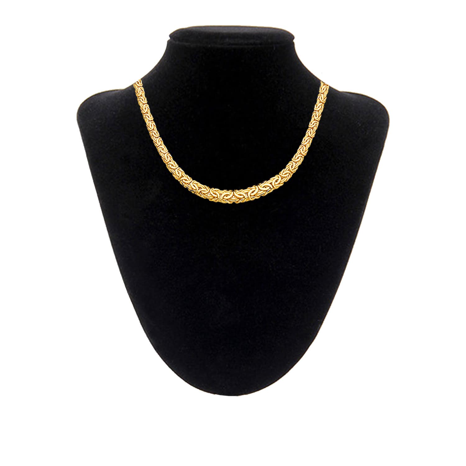14K Yellow Gold Graduated Oval Hollow Byzantine Necklace