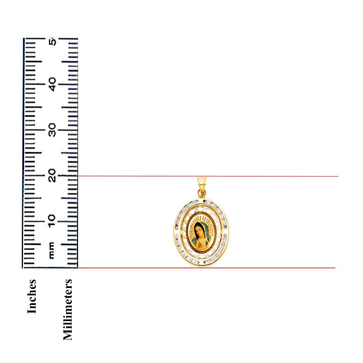 14K Yellow Gold Guadalupe Cubic Zirconia Religious Pendant