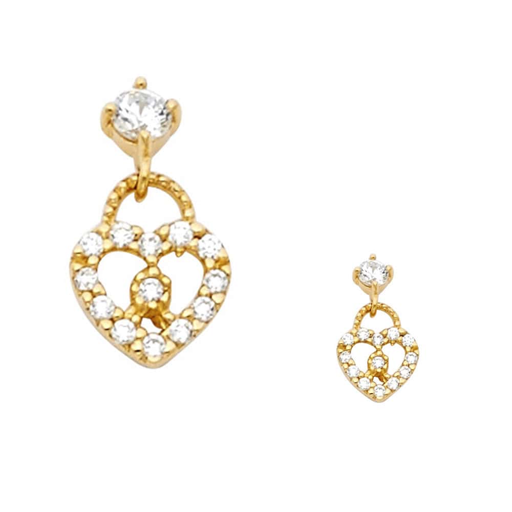 14K Yellow Gold Heart Cubic Zirconia Stud Earrings w/Screw