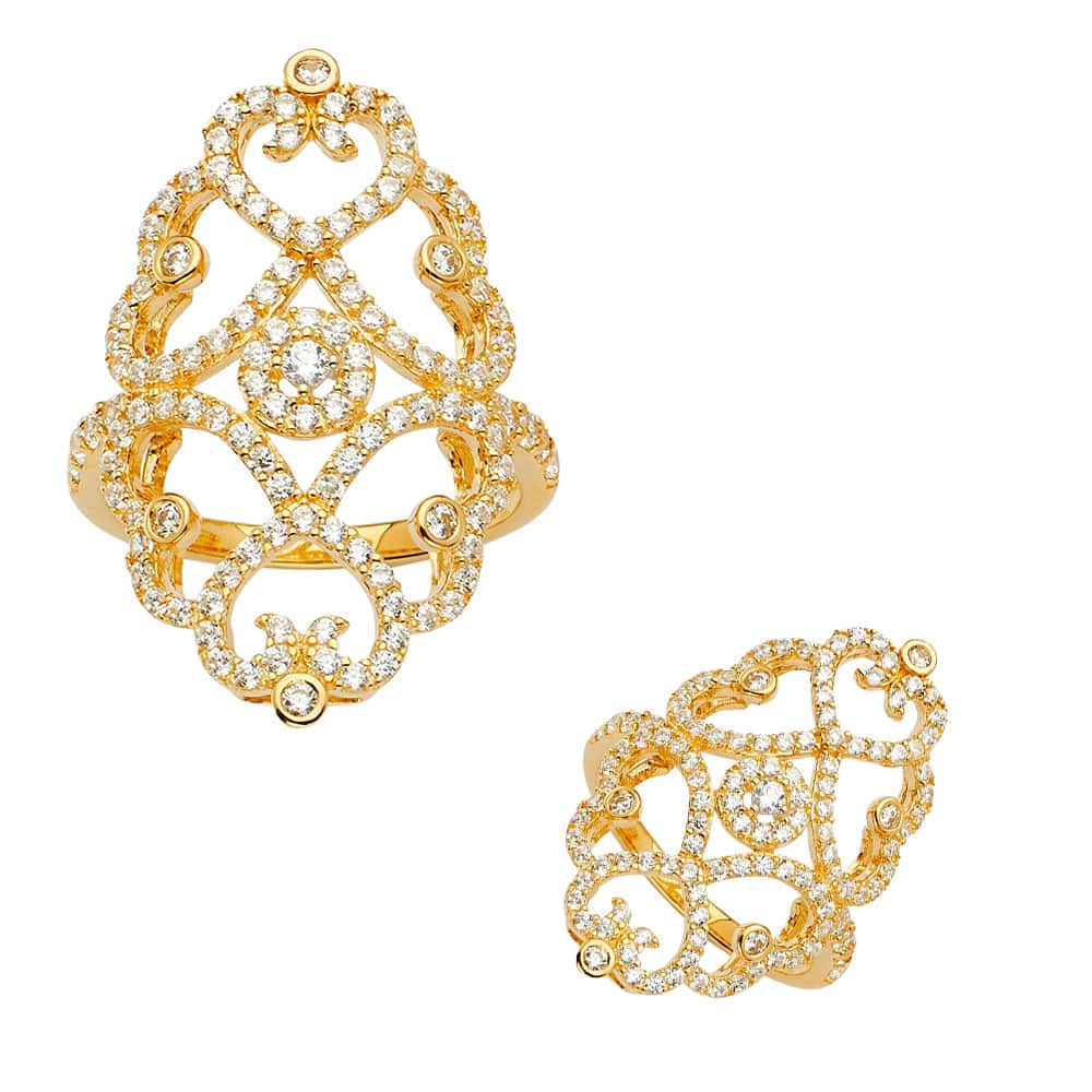 14K Yellow Gold Multi Line MP Cubic Zirconia Ring