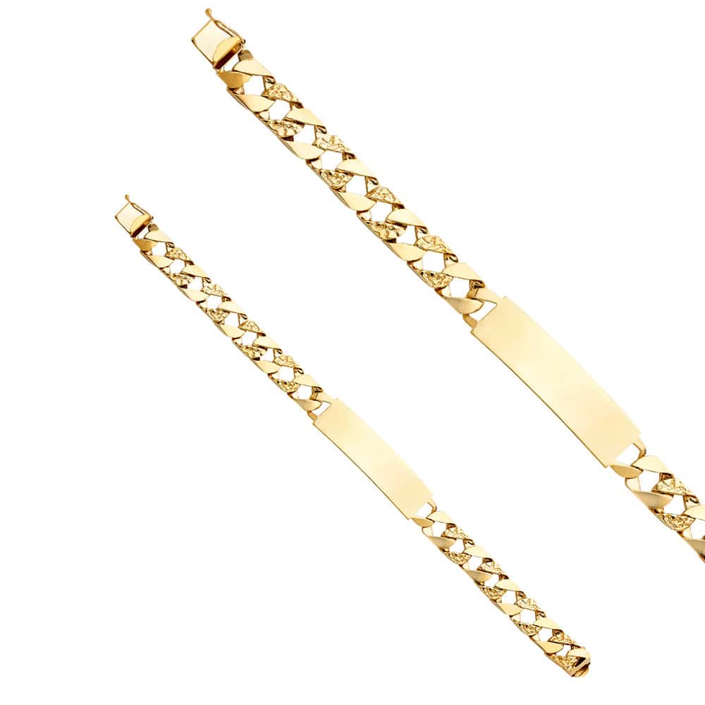 14K Yellow Gold Nugget Cuban Link ID Bracelet – 8.5″