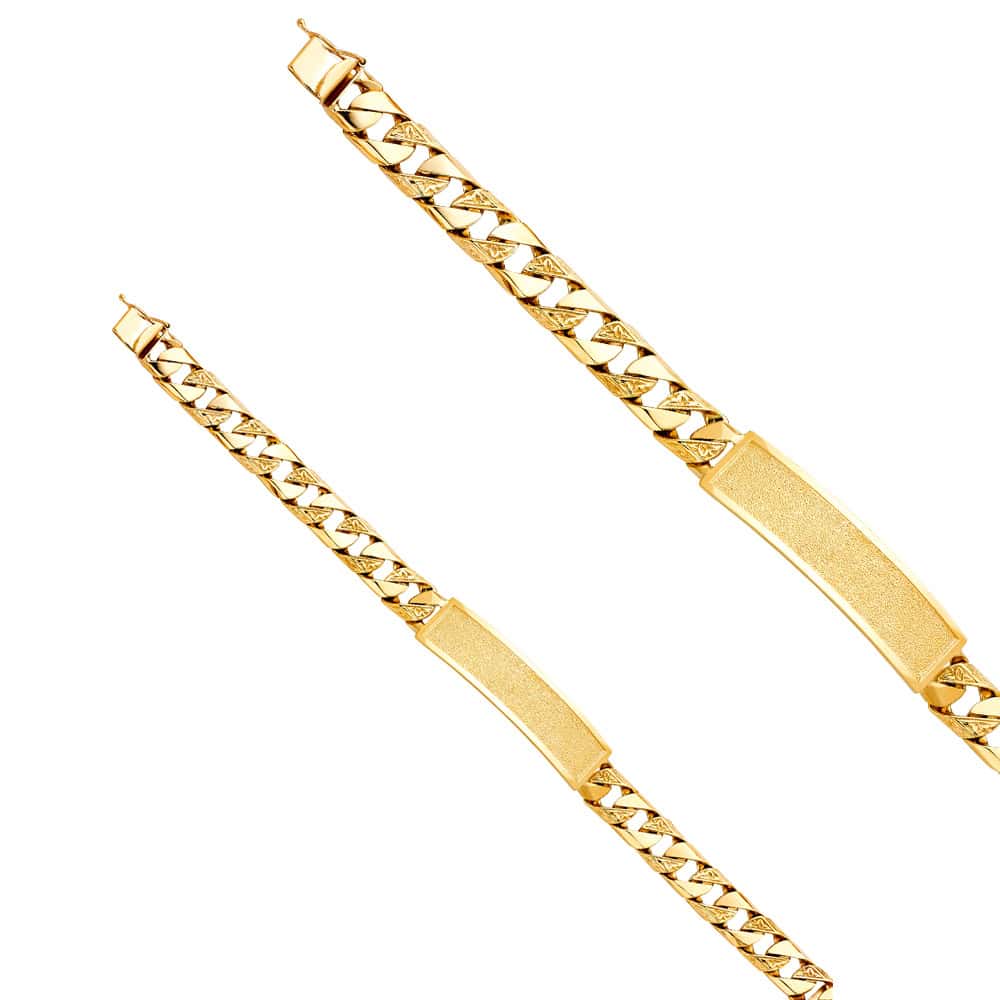 14K Yellow Gold Nugget Cuban Link ID Bracelet – 8.5″