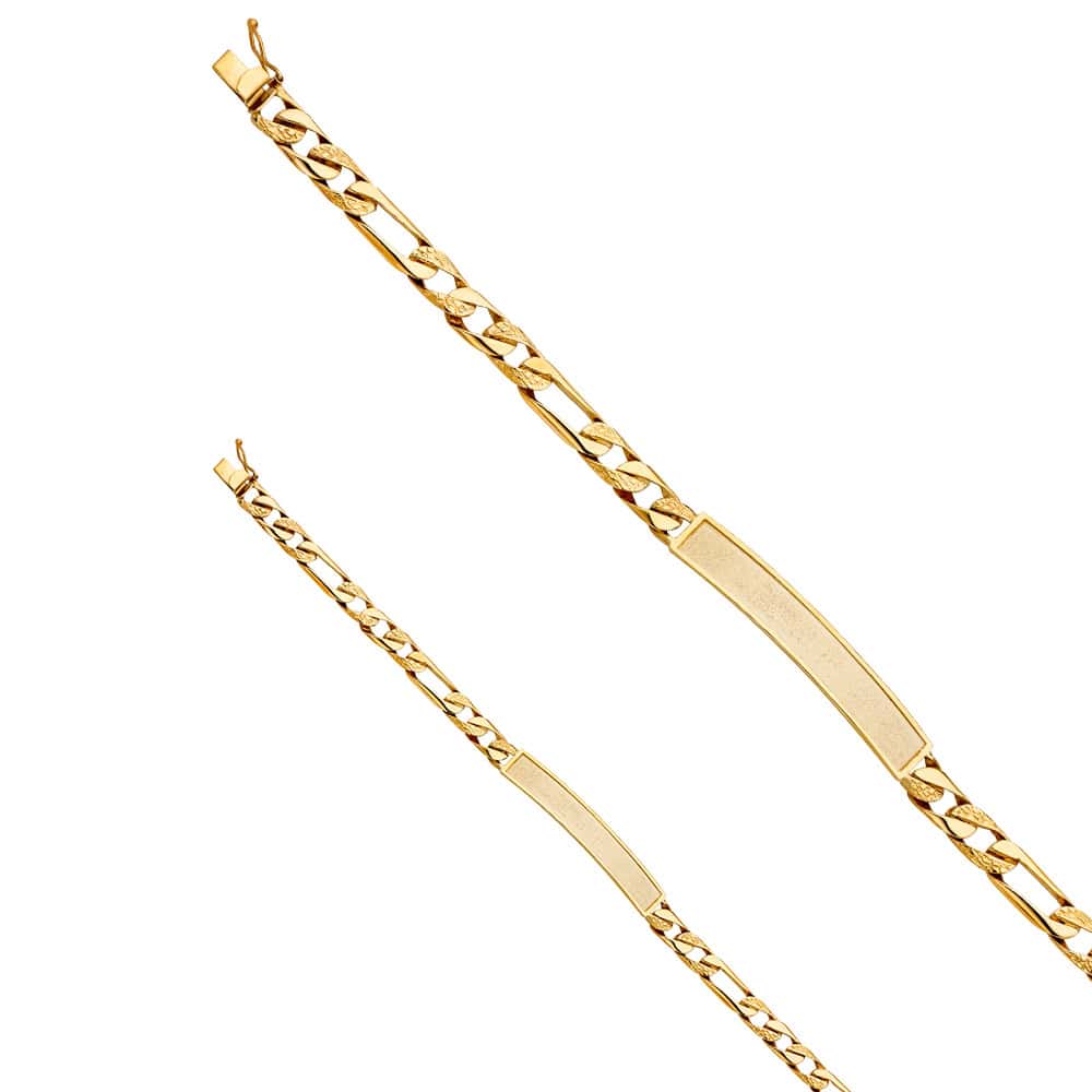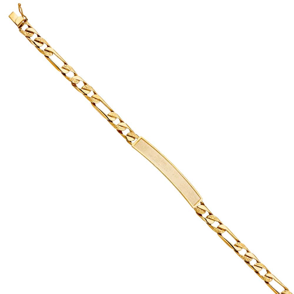 14K Yellow Gold Nugget Figaro Link ID Bracelet – 8″
