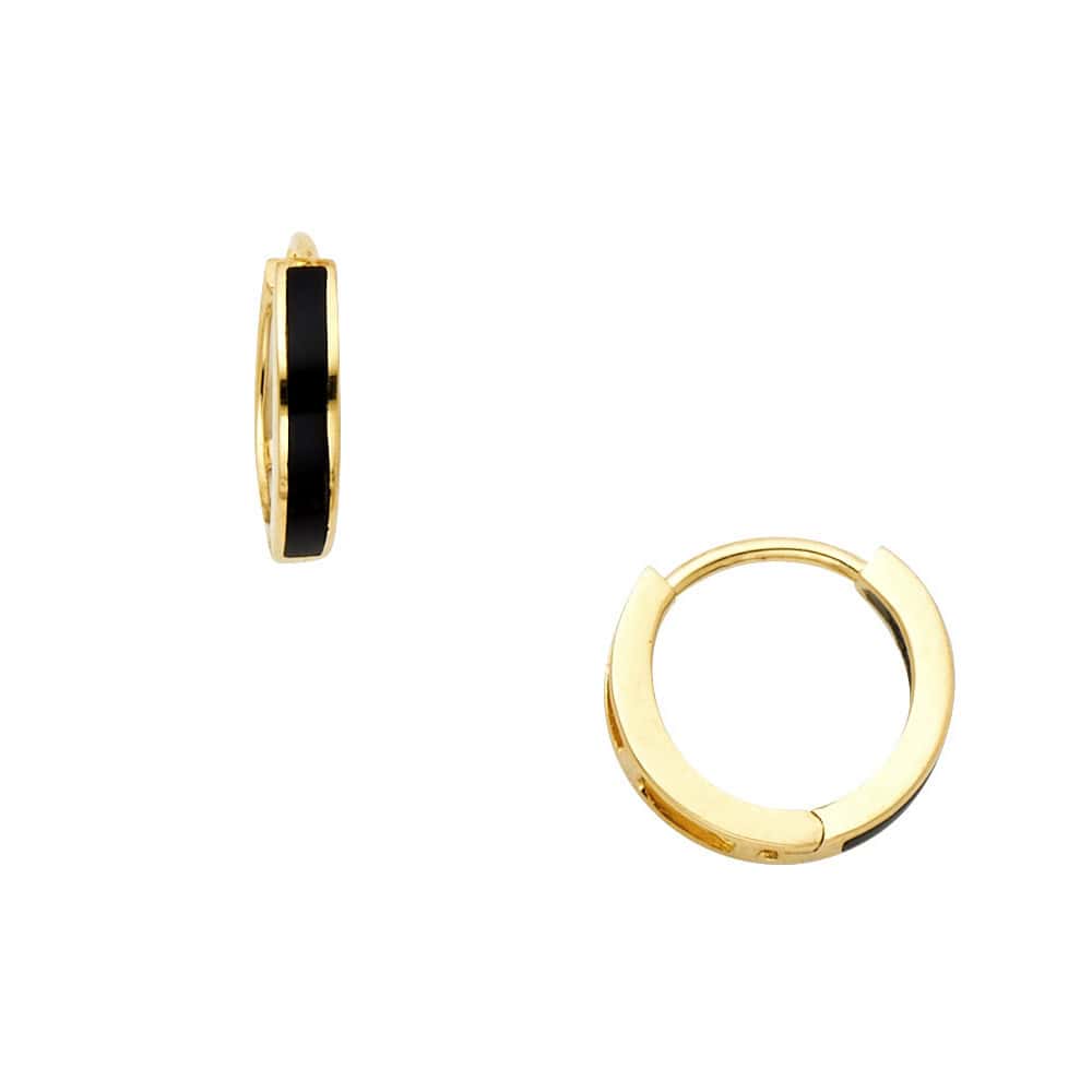14K Yellow Gold Onyx Huggies Earringsrings
