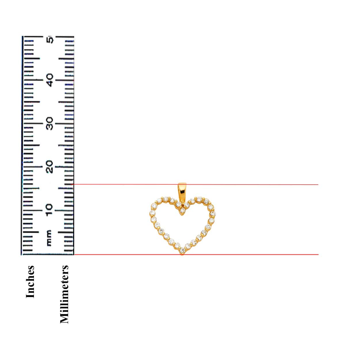 14K Yellow Gold Open Heart Cubic Zirconia Pendant