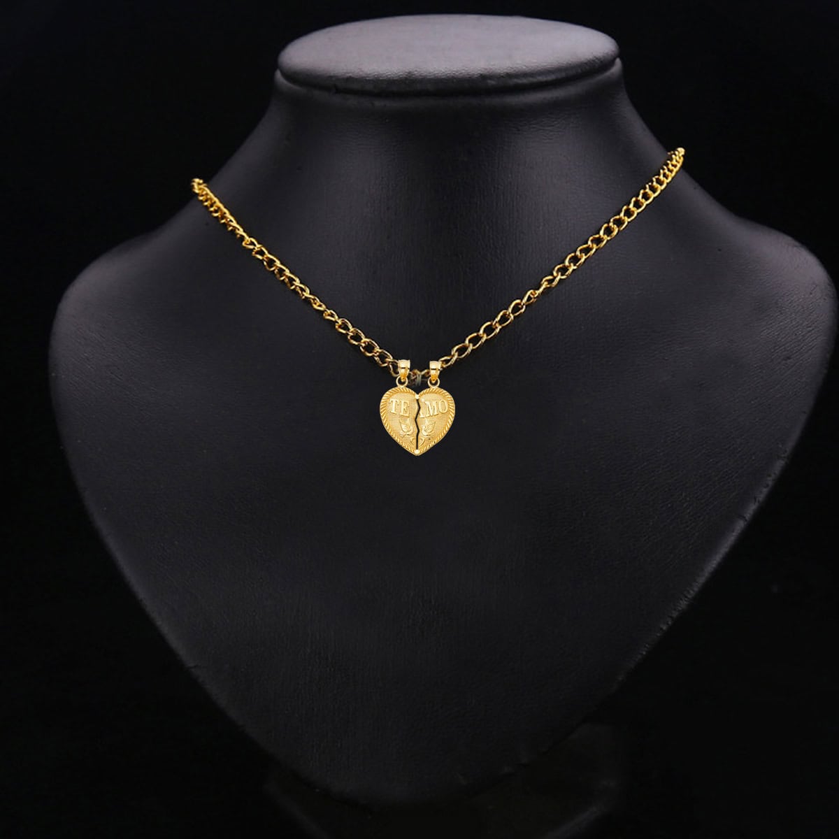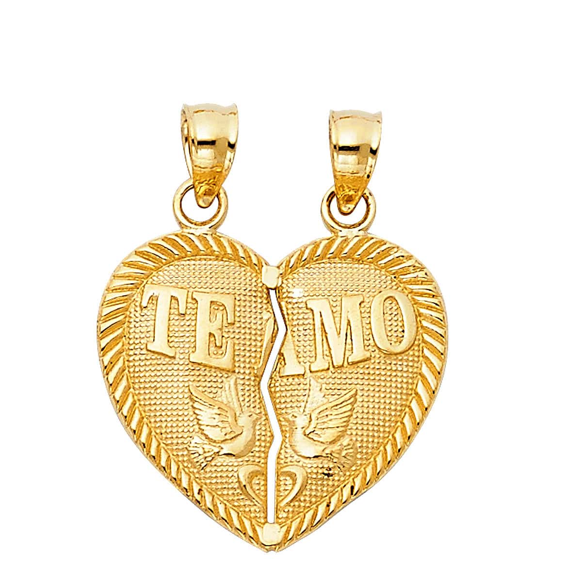 14K Yellow Gold “TEAMO” Couple Broken Heart Pendant