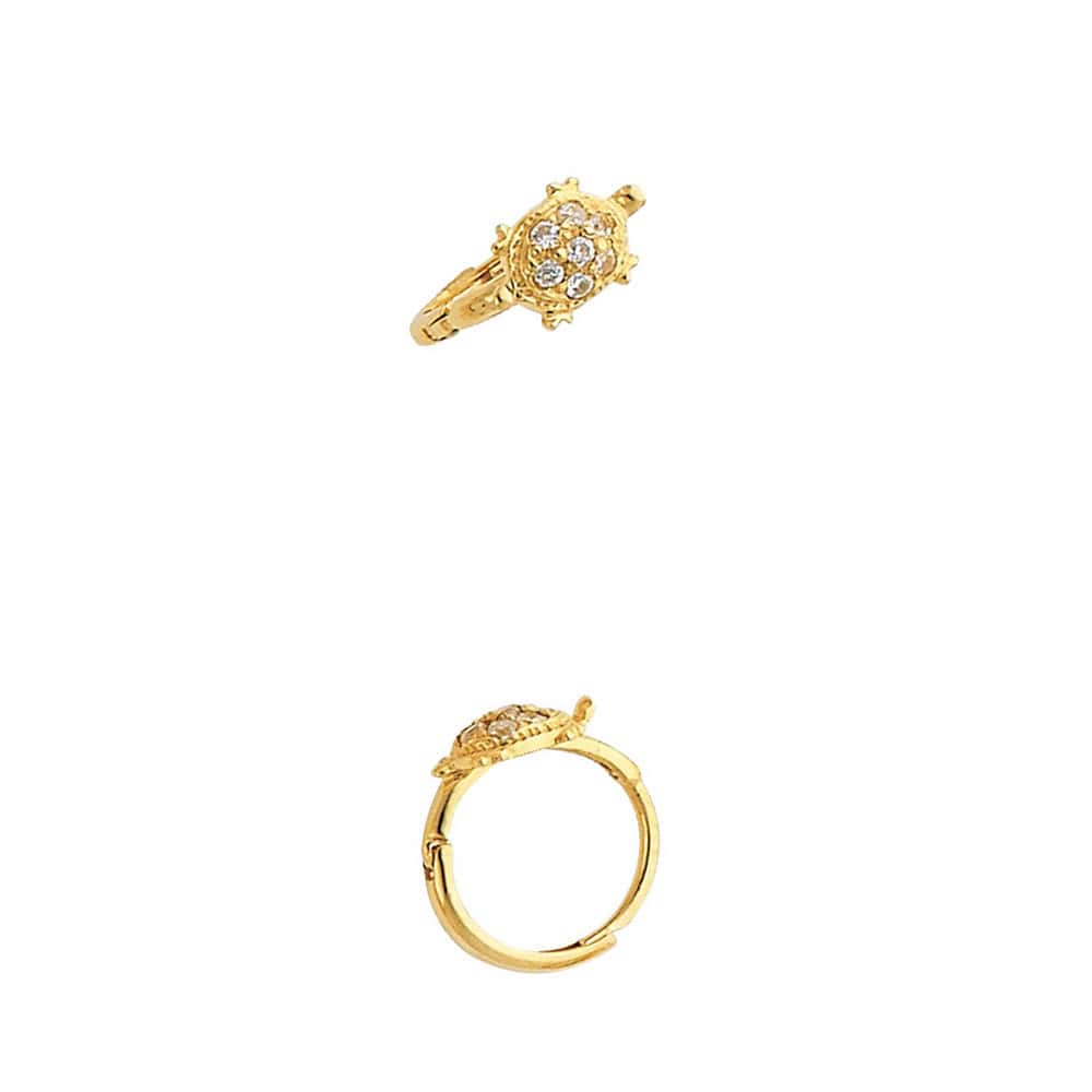14K Yellow Gold Turtle Cubic Zirconia Huggies Earrings